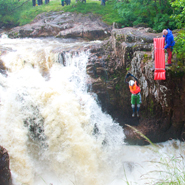 As I step out into the thin air I hear the crowd lift its voice just above the roar of the water, and for just an instant – though in my wildest fantasies I never thought it would happen this way – I am a true daredevil. I am ‘World Extreme Lilo Champion’.