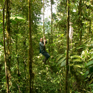 My guide David Yunes and I are in wellies squelching through muddy trails cut between towering parallel bars of thick forest. We pass endemic Toucans, Dracula Orchids and Owl Butterflies with wings like snakeskin. We hear Howler Monkeys bark like a low wind across the valley and Tree Frogs call like a plop of water. We find millipedes long enough to wear as a necklace, giant warrior ants with toxic blue dots on their back and a (baby) tarantula as big as my palm. At one point we even discover a thick hanging vine and take turns swinging out, Tarzan style, 60-feet above the jungle abyss.